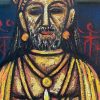 Rabin Mondal was part of the Group of Eight in Bengal and is known for his expressionist, raw style. He often painted distorted kings, queens, and courtiers, as symbols of corruption, decay, and the human condition, reflecting both history and contemporary politics.