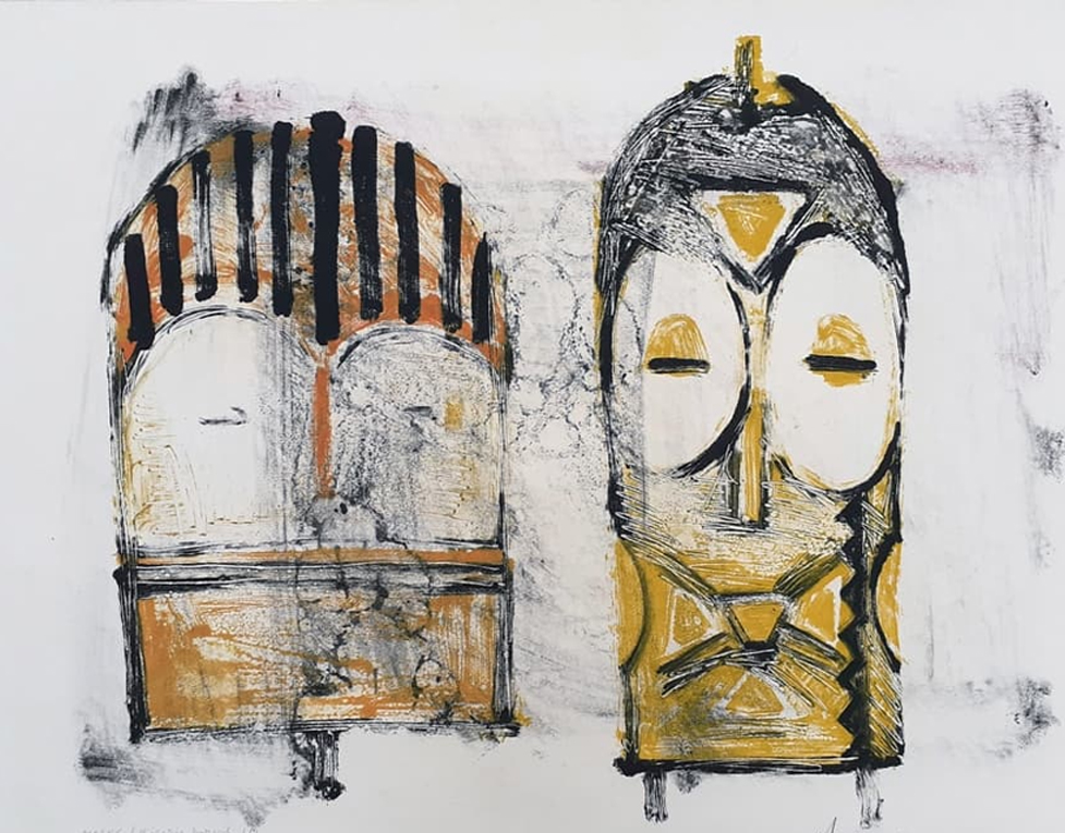 / Masks Nigeria Period, Frottage on Paper, Edition 1/1, 29.4 x 21.25 inches
