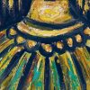This painting, Queen (2015) by Rabin Mondal, radiates a commanding yet introspective presence, reflecting the artist’s deep exploration of human dignity and fragility. The figure of the queen, portrayed with a solemn expression and crowned head, stands against a bold red background that heightens the intensity of her gaze. Her face, rendered in thick impasto strokes of yellow and black, carries both regality and weariness — as if she bears the weight of her crown and the burdens of power alike. The textured brushwork and earthy palette give the painting a raw, sculptural quality, emphasizing emotion over realism. Mondal’s queens, like his kings, often transcend literal royalty; they symbolize endurance, inner strength, and the quiet resilience of the human spirit amidst turmoil. Through this work, the artist transforms the image of a monarch into a universal symbol of struggle, pride, and the unyielding quest for dignity.