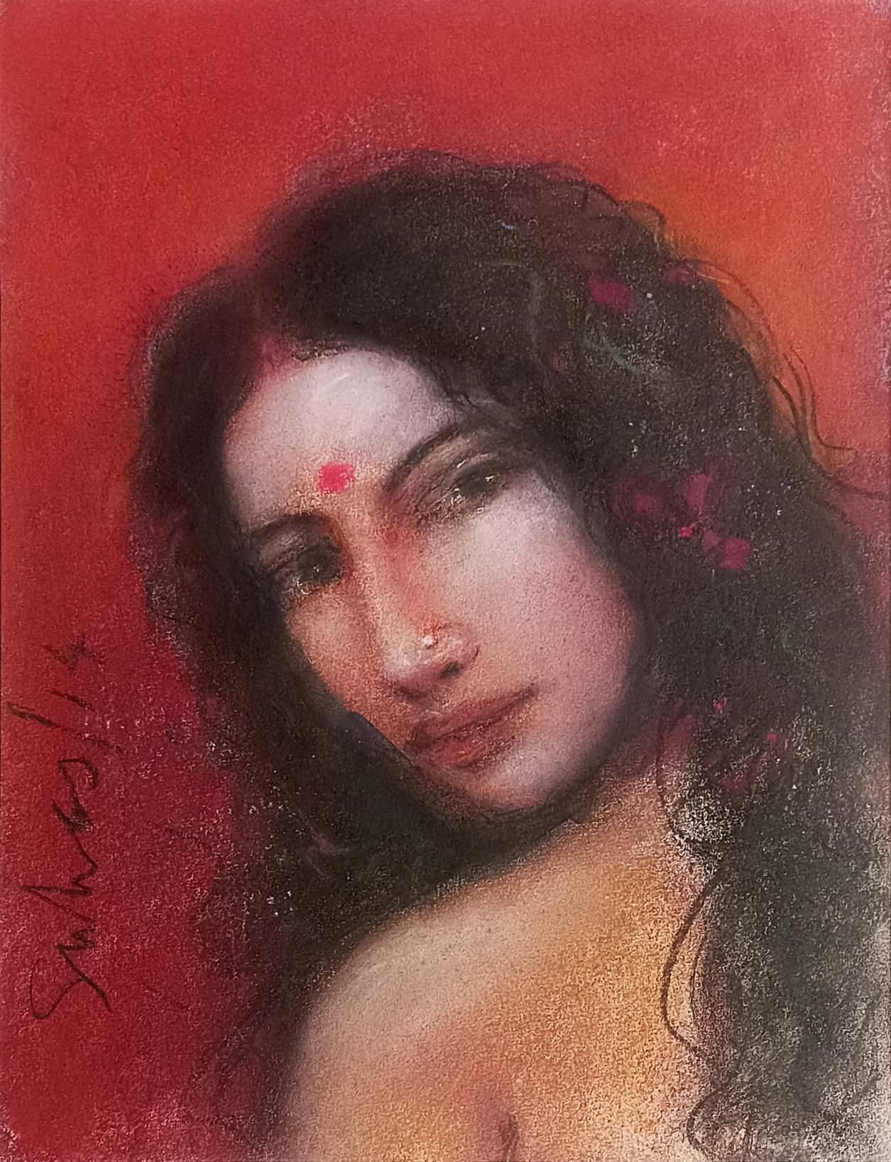 Suhas roy’s early Etchings, Landscapes, and Christ figures eventually gave way to his radha series – paintings of women, beautiful, luminous, and slightly melancholic, gazing at the viewer or away into the distance.