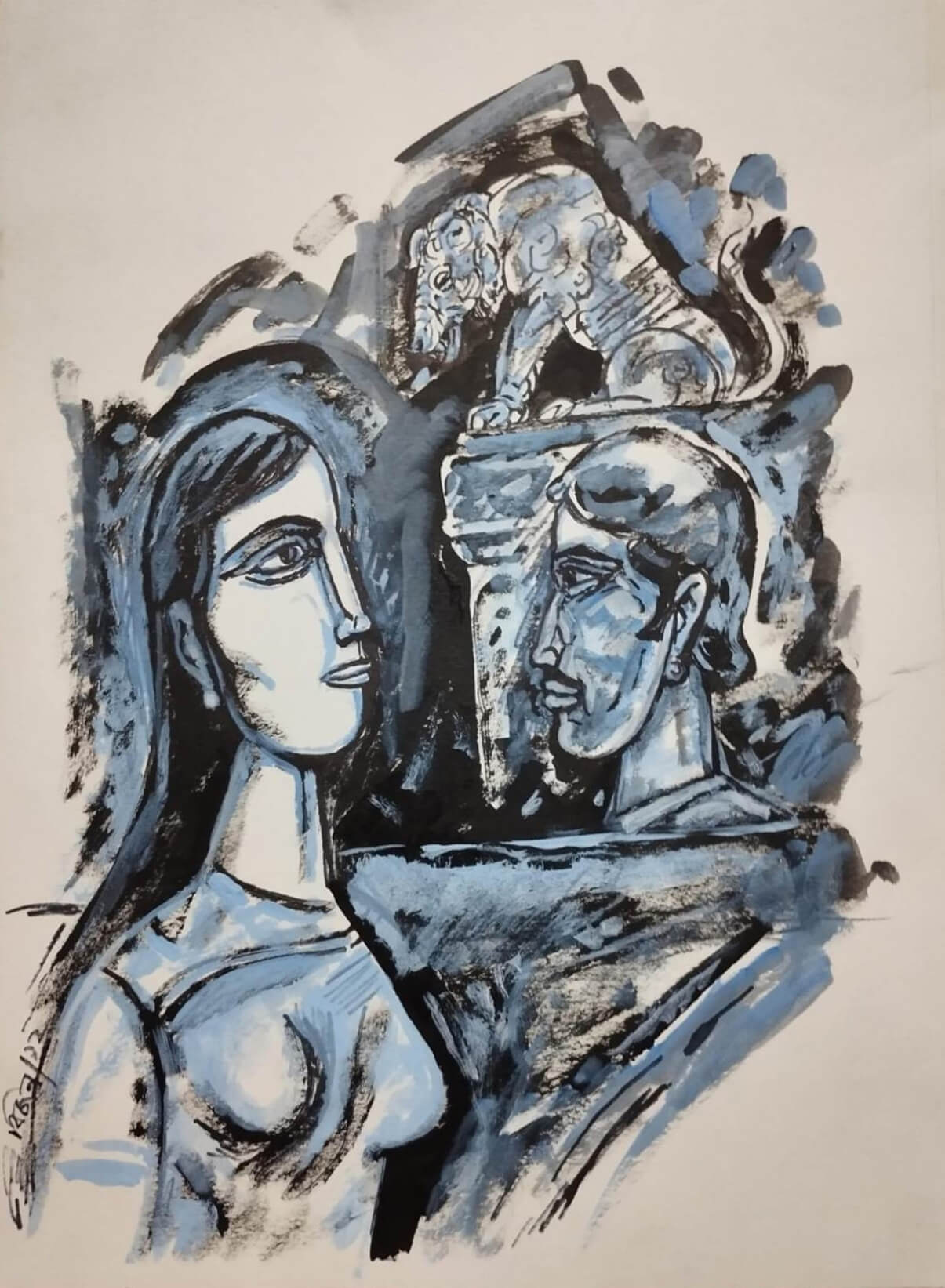 His paintings have narrative elements but are in no way illustrative. He is here both as a composer and interpreter. His archetypal imagery and symbolism are not explicit as in the recent Indian variety of Surrealism and fantastic art. He has always avoided the sensational and the fearful aspects of art. He has searched for significant visual forms that have behind them the range and scope of Human Art since the earliest cave dwelling days.