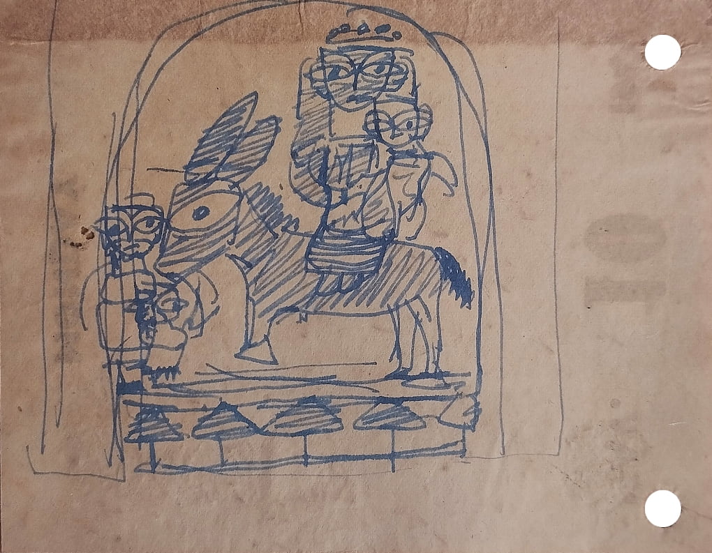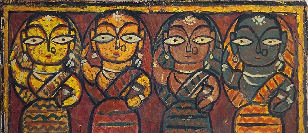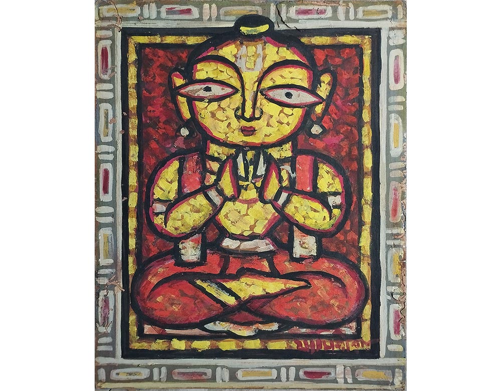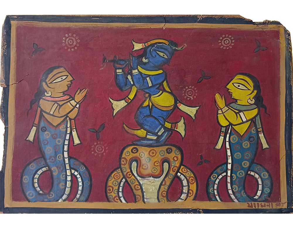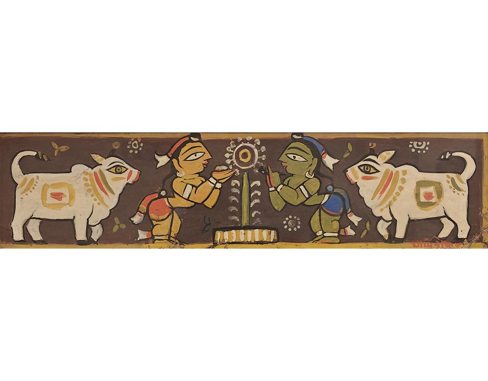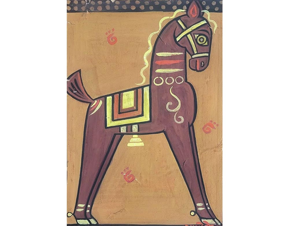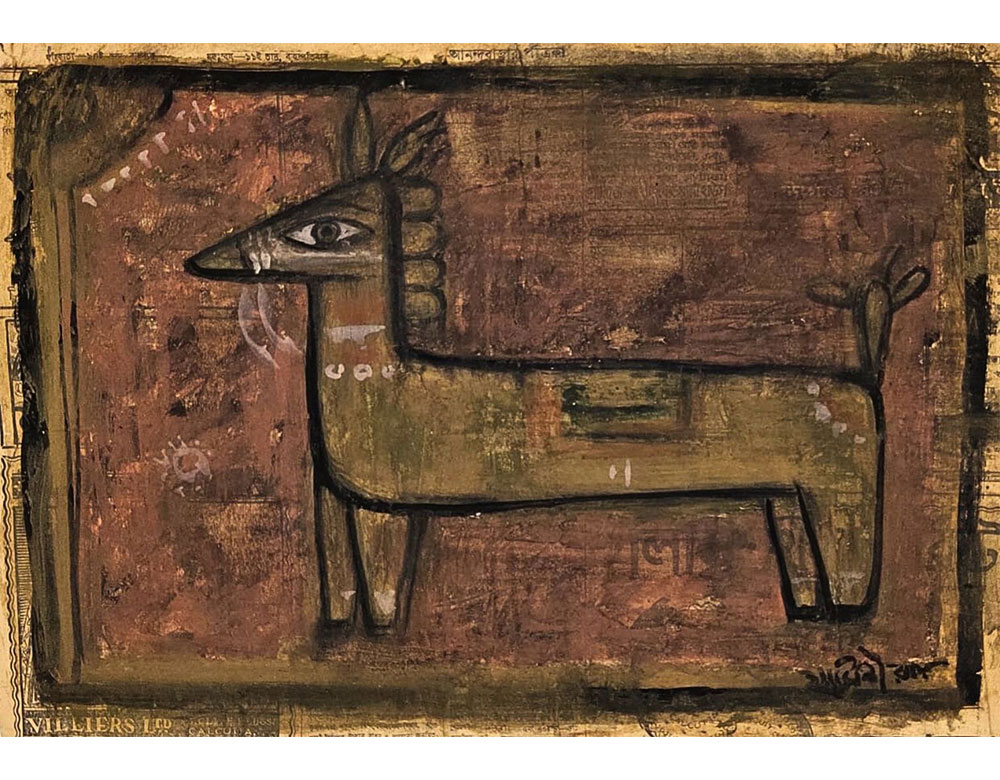 While there, he learned academic drawing and painting in the Western tradition. After graduating, Roy adopted the simple forms, flat colors, and humble paints of Bengali folk artists.