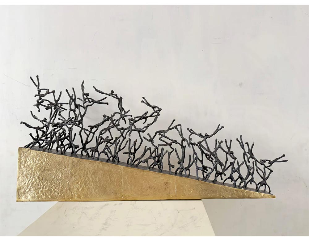 One of the most significant contemporary sculptors, Radhakrishnan often refers to the bronze characters as his alter egos.