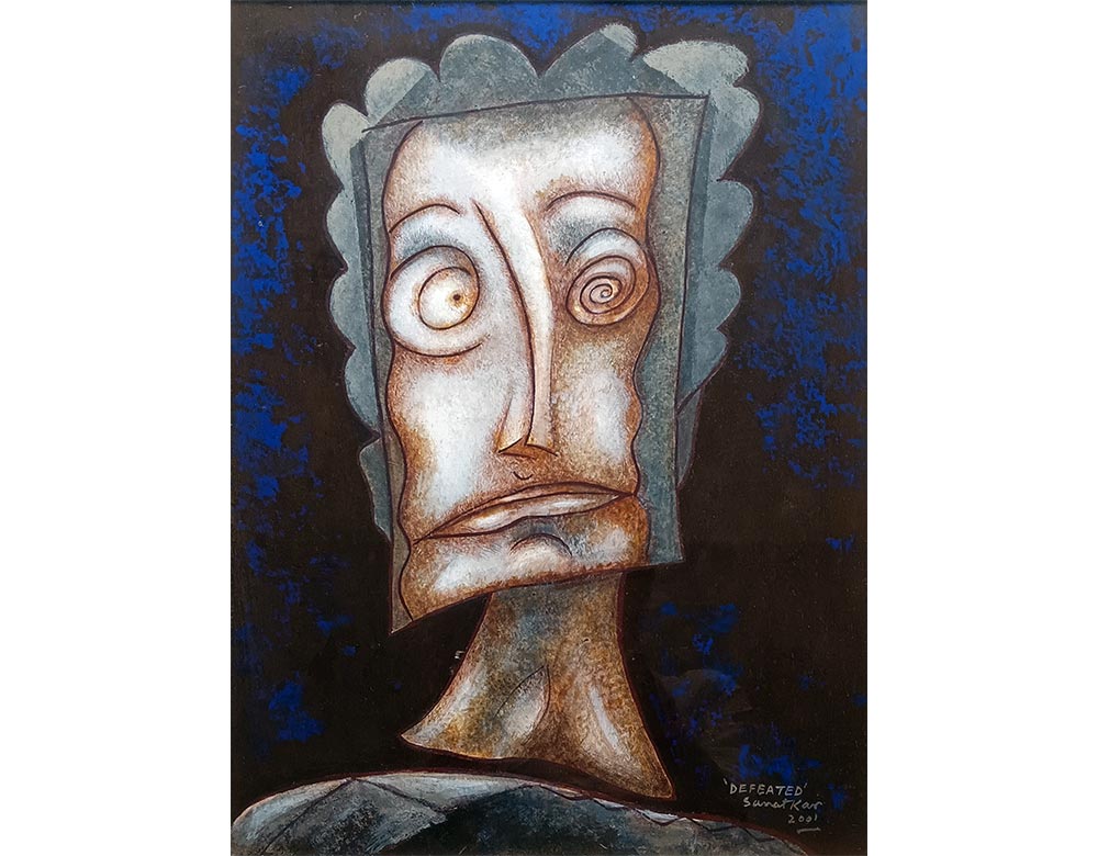 Sanat Kar was born in Santiniketan in 1935 and is known for his surrealist imagery that throws light—in his own words—‘on the deep, dark recesses of mind’. Kar graduated from government college of arts and crafts, Calcutta, in 1955.